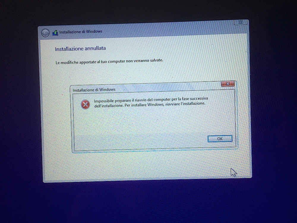 I've tried several times to Install Windows 8.0 into the Secondary HHD Drive (USB KEY created with a Windows 8.1 Iso Image through the Bootcamp assistent) but without success. This is the message at the end of the Windows 8.1 installation process: