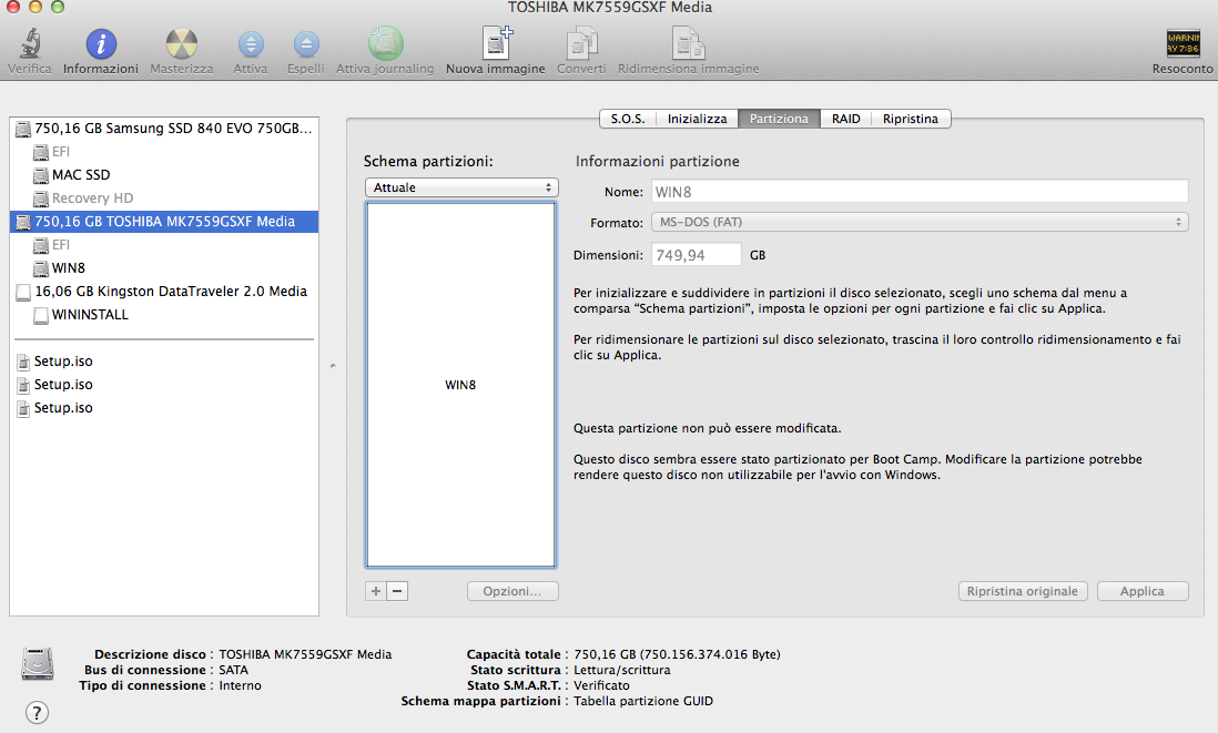 I've tried several times to Install Windows 8.0 into the Secondary HHD Drive (USB KEY created with a Windows 8.1 Iso Image through the Bootcamp assistent) but without success. This is the message at the end of the Windows 8.1 installation process:
