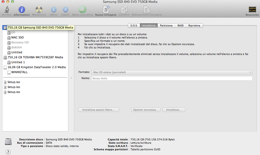 Now I've restored the SSD Hark Disk in a single OSX Partition.