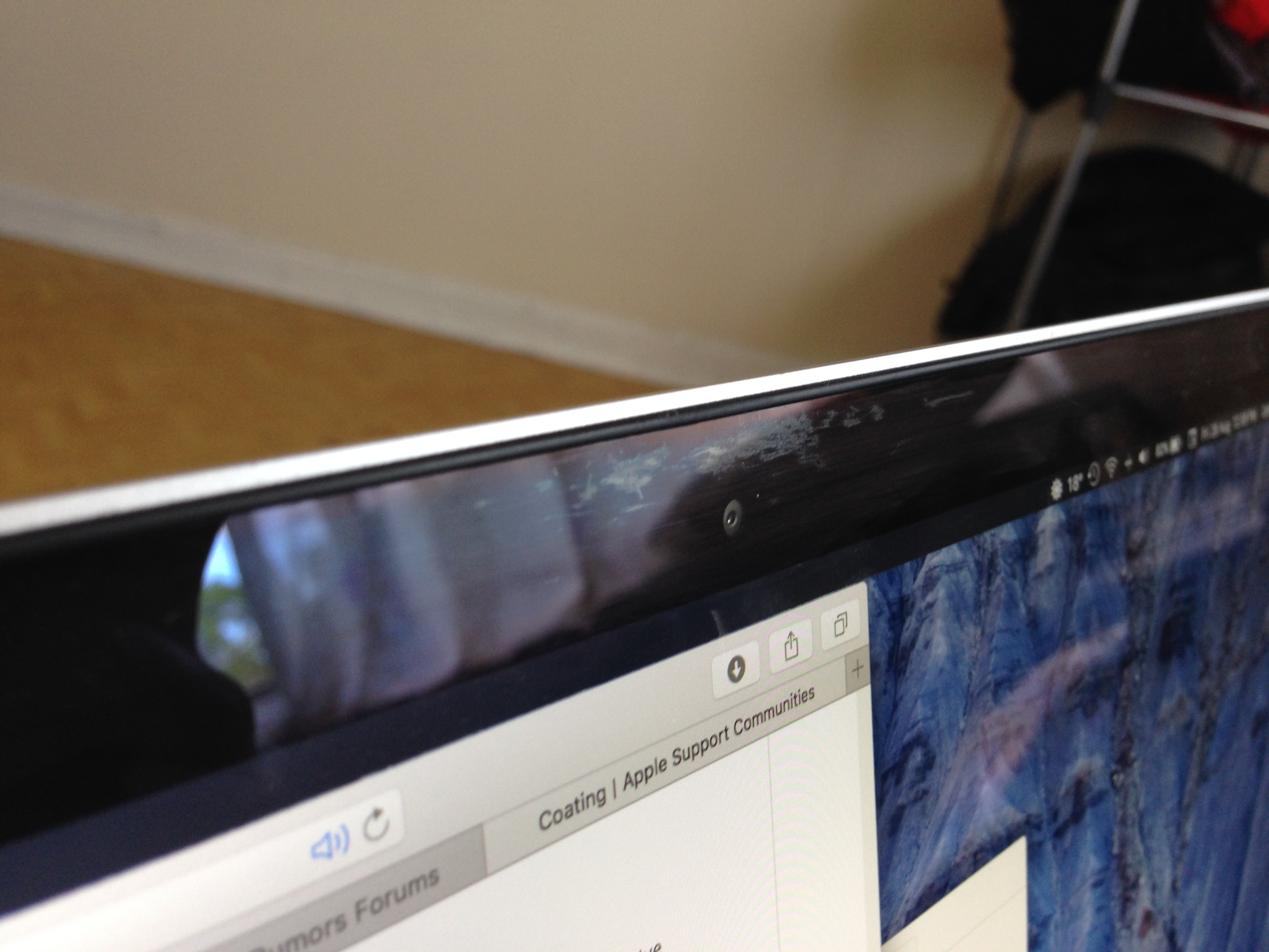 I was cleaning my 15" MBP Retina today using a cloth that came with it and noticed that some of the coating on the black outer border was coming off. At first it looked like smudges until I went back over it and noticed it was coming off and getting larger. Anyone hear of or had this issue? Is it ok? Cleaning it before so everything was ok, but the problem appeared only now. I bought my MBP less than a year ago 😟