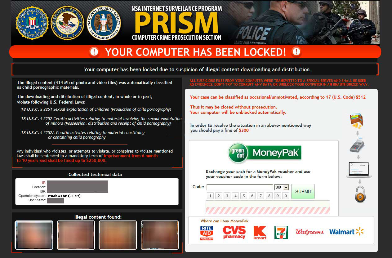 Please see how do i get rid of nsa virus and browser has been blocked by FBI .