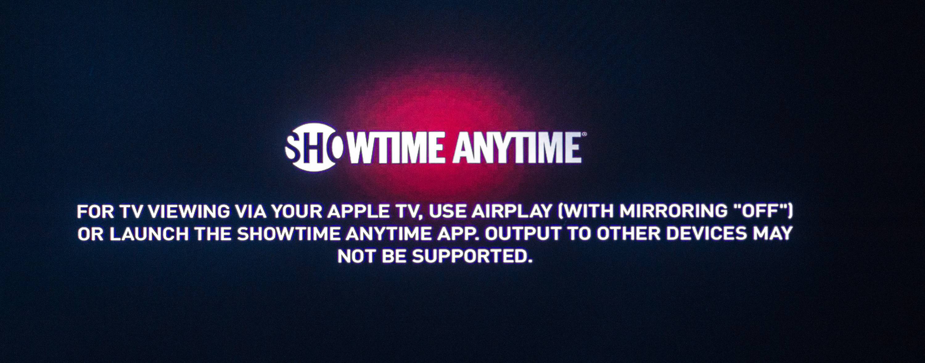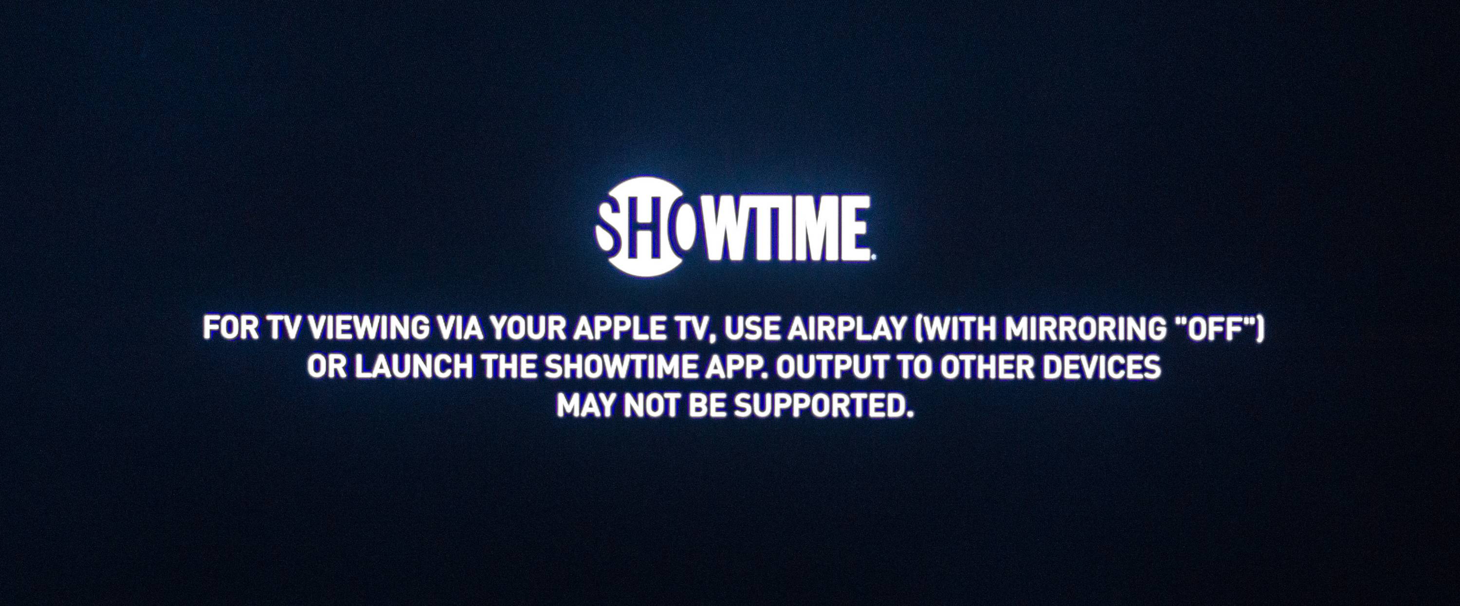 Now HBO allows me to do Airplay streaming through Apple TV, so this is good. Showtime, illogically does not allow AirPlay. This is well known.