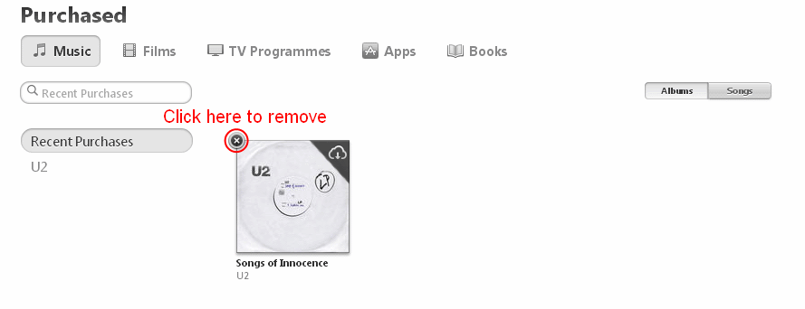 Step 2) find the unwanted music (in this case: the pesky 'free' U2 album)