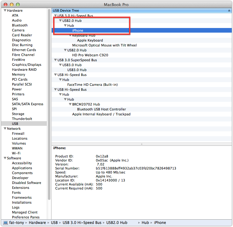 "USB 3 devices will appear in the "USB 3.0 SuperSpeed" section. Other devices will appear in the "USB Hi-Speed" section"