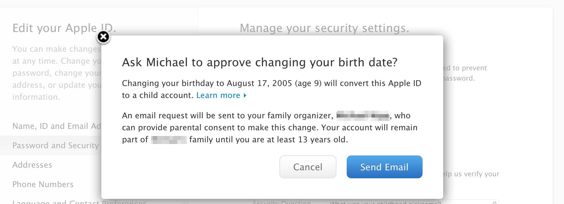 so make sure you add the childs account to family share and confirm it before attempting to change their birthdate.
