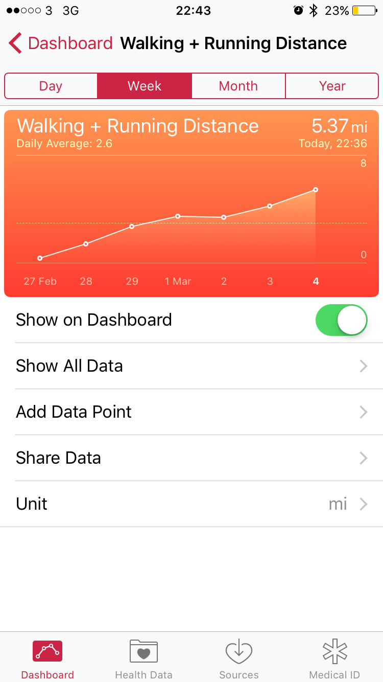 I know it's not a huge issue but is there a way to change from KM to Miles on the "Walking + Running distance" section of the new Health section?
