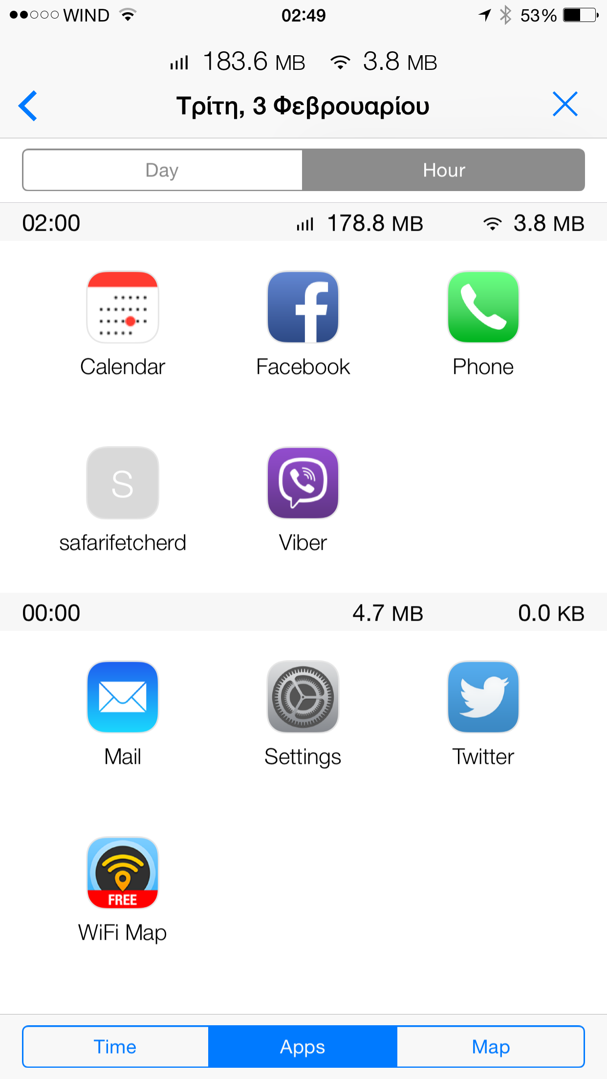 The data use appeared suddenly in between my scheduled hourly checks, as a lump sum of 277MB.
