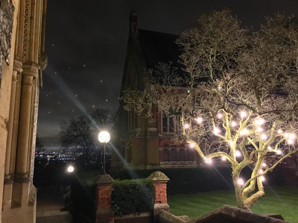 I took this photo on the iPhone 6 last night, and the star-like lens flare dots appear to correspond inversely with the lights on the tree. I used the vividHDR app but the dots appeared on the screen before the HDR was applied, so it's definitely a lens issue. A little soft flare might be okay and cute, but these hard points are distracting. The green flare in the tree is presumably from one of the street lamps.