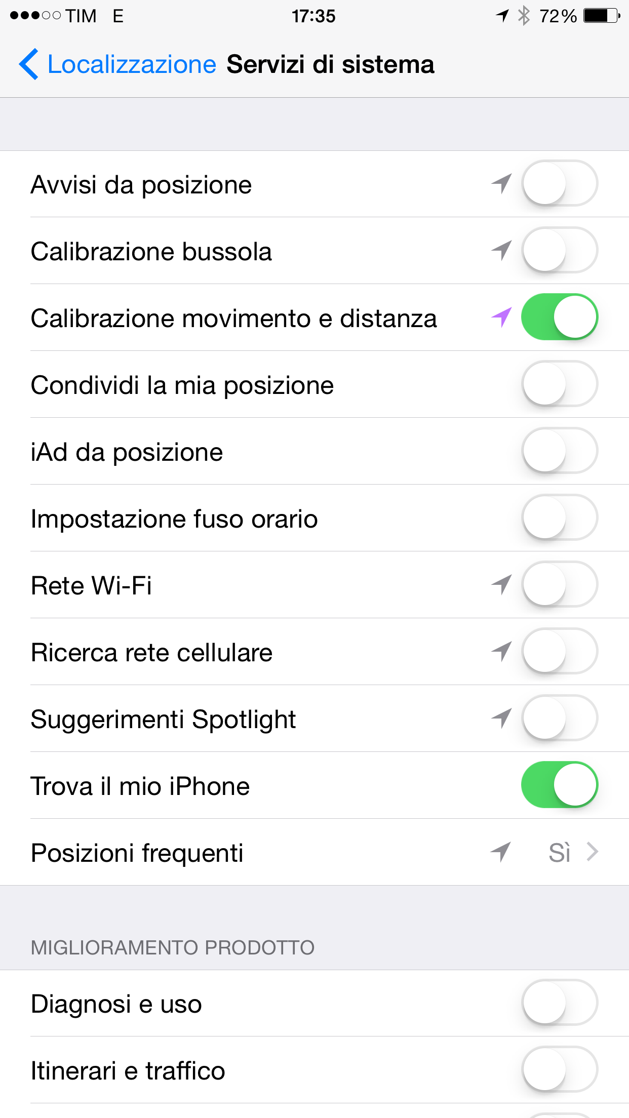 Anyway, it is some days (around 20) that my iPhone (6, iOS8.2) discharges a little bit quicker than before, so I was checking all the settings to find something energy consuming and I found that MC was always on (maybe since 3 months ago when i bought the iPhone – location arrow has been turned off since 3 days ago).
