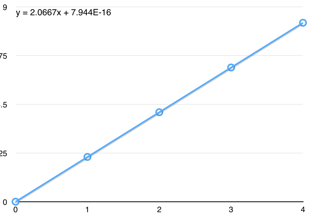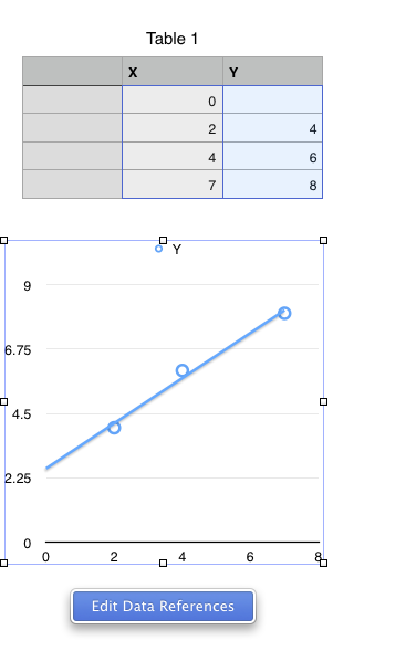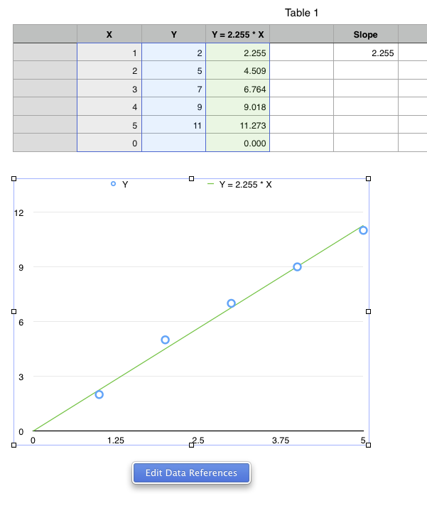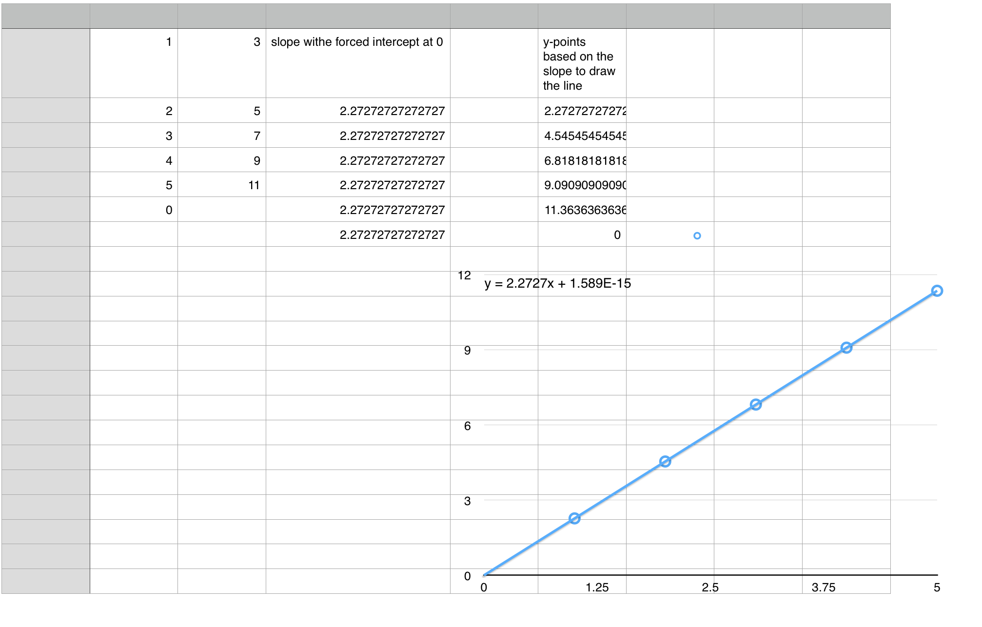 and btw m I'm pretty sure about the slope , i used hand calculations and other programs and still only in Numbers it gives an extremely small value of b , though in any other graphing app , it always says that b is exactly 0 , i fuss it has to do with the "sow equation" functionality ?