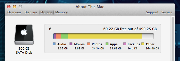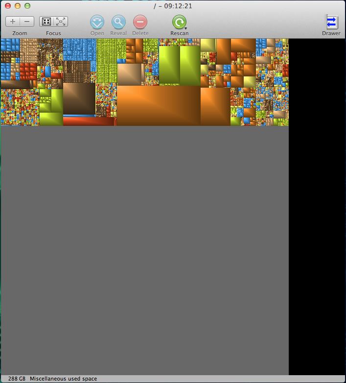 So there's about 320Gb of hard drive space that's being eaten up, but I can't see where. I have been doing some heavy work in iBooks Author, so I opened up the iBA files and deleted the previous versions. Won back a bit of space, but not a dent really. I think the local snapshot versions are actually pretty small.