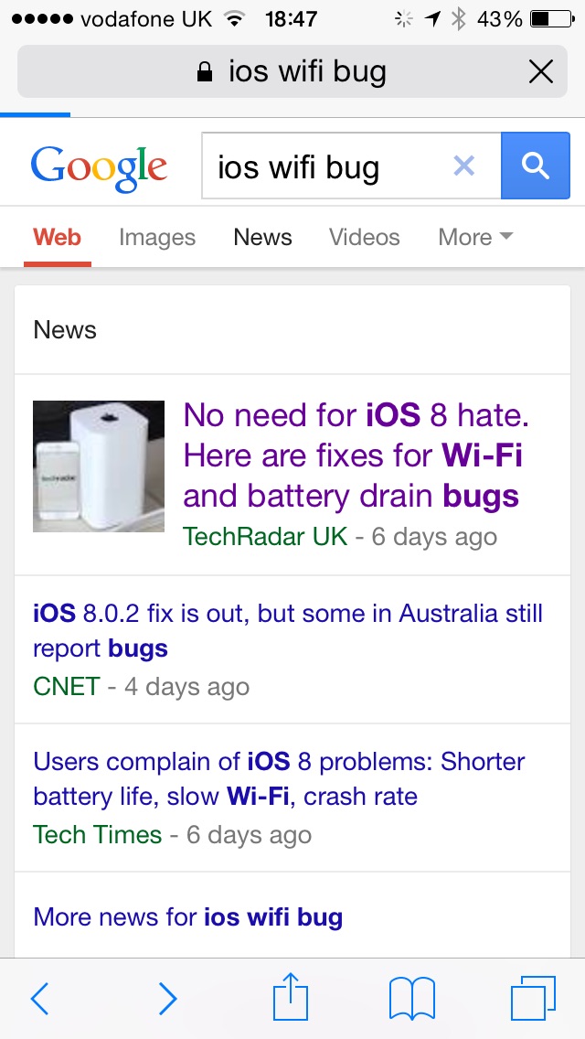 My iPhone 6 is still randomly disconnecting from my home WiFi, even after the latest OS update. My spouse also has an iPhone 6 and has experienced no issues with WiFi connectivity. When I spoke with Apple earlier in the week, I was told that they were aware of this issue with iOS 8 and would be working on a solution that should be released in 24 hours. I have a $700+ phone that doesn't stay connected to WiFi. Ridiculous. Apple really needs to get it together. This is the worst OS release yet.
