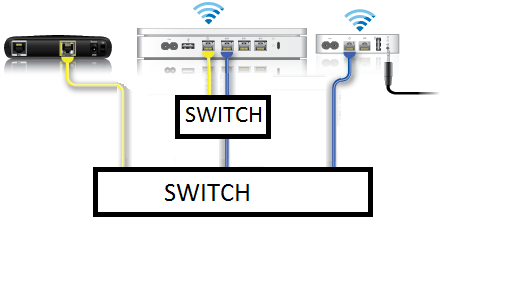 As you can see, the issue is that the LAN port of the Extreme is not connected back to the switch, I've only connected the WAN port of the Extreme to the switch. Therefore the express doesn't get an IP over the CAT5e cable coming from the switch, and will only extend wirelessly. The reason I don't make that connection is because the switch/modem is in the basement, the Extreme is on the second floor, the express is on the far side of the first floor, and I don't want to run another cable through the house.