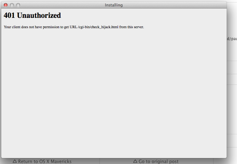 This time, I selected Yes to continue installing, another box that was blank appeared and then a few minutes later the Mac shut down.