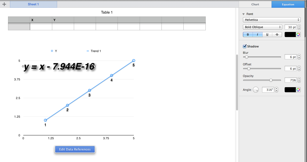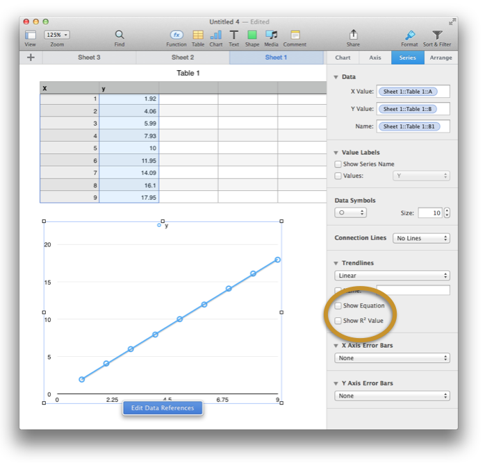 Hi, I am using numbers for school. I have created a scatter plot and have added a trend line. I have also added the trend line equation and R^2 value. Numbers automatically puts them in the top left corner of the screen. This gets in the way of my plot. Is there a way that I can move this? I have tried and tried. You would think that it would be simple. This is pretty frustrating. It is very easy in Excel. Thanks for any help.