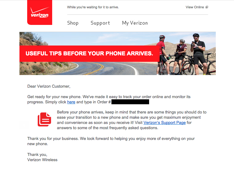 So today I received and email from Verizon titled "Things to know about your new Verizon phone." In this email it has direction on how to check my order status and sends me to a login type page that I insert the order number (which is now different than what was in the first email) and my last name. So, 3 weeks later I think they confirmed that they actually did receive my order and apparently it's still scheduled to ship by 11/14 - not really sure because this new page basically says the same as the old one. Having said that - when I click the link on that page that says "Review your order History in My Verizon" it still shows no orders....