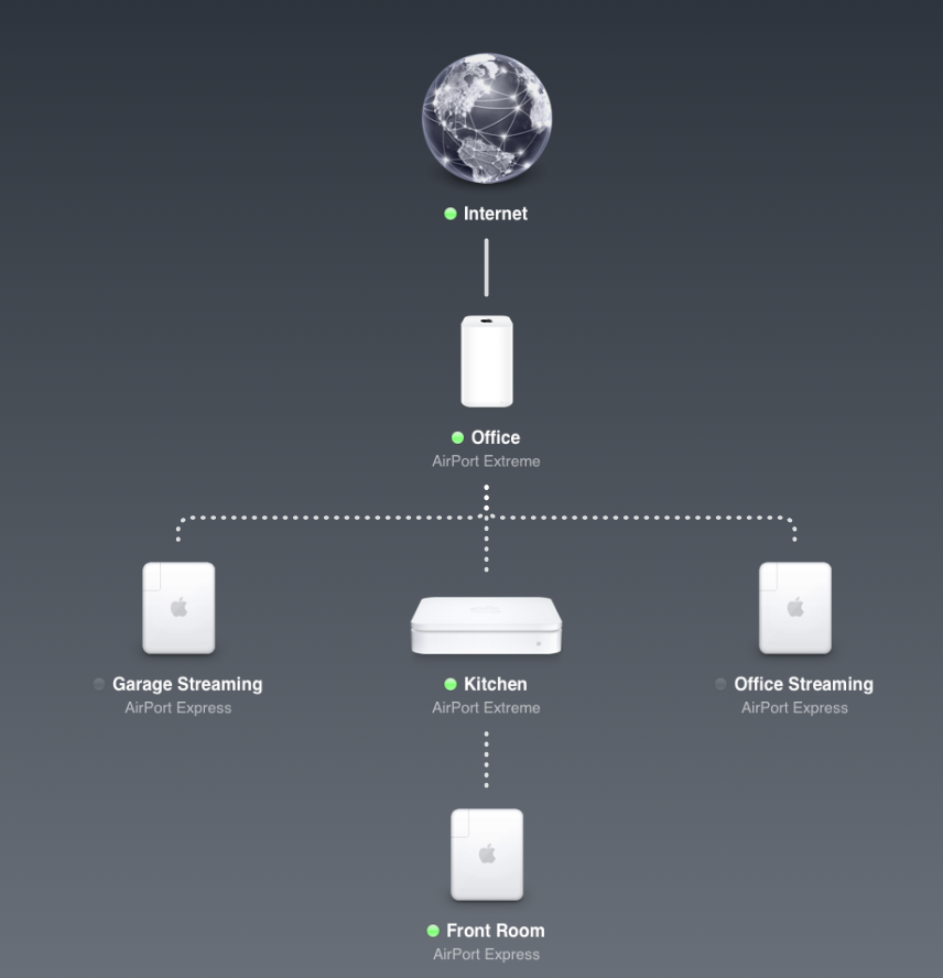 So, for example, let's say that the wireless signal leaves your new AirPort Extreme with an Internet speed signal of 50 Mbps. After the signal must pass through a few walls or a ceiling on the way to the location of the older AirPort Extreme that will be extending the wireless network, the speed of the signal might slow to only 20-25 Mbps by the time that it reaches the older AirPort Extreme.