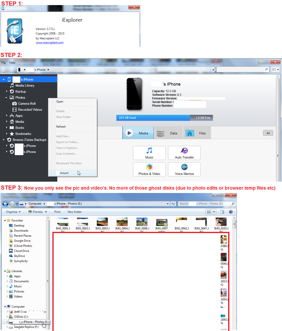 Windows explorer see's multiple "Local Disk" files in the iphone DCIM folders