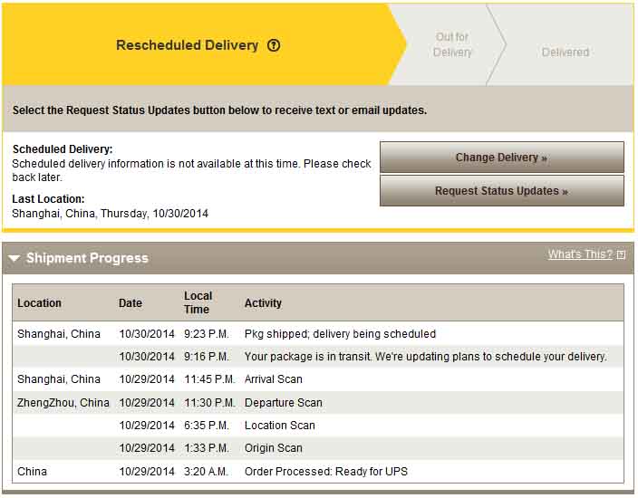 So, I received a shipping notification that my ATT, 128gb, Space Grey iPhone 6+ had shipped Oct 30 with a delivery date of Nov 4 (I ordered on Oct 6). I paid for 2-3 business day shipping which would actually make my phone arrive on Monday the 3rd. My shipping status went from "In Transit" to "Rescheduled Delivery" when I went to look at the shipping, which is either good news or bad news. Does this mean maybe they're expediting my shipping for the 2-3 day delivery time? Or is it getting delayed? Anyone that has their phone now and had this happen during the time their phone was shipped or if you have seen this recently in your shipping details -- can you shed some light? Thanks!