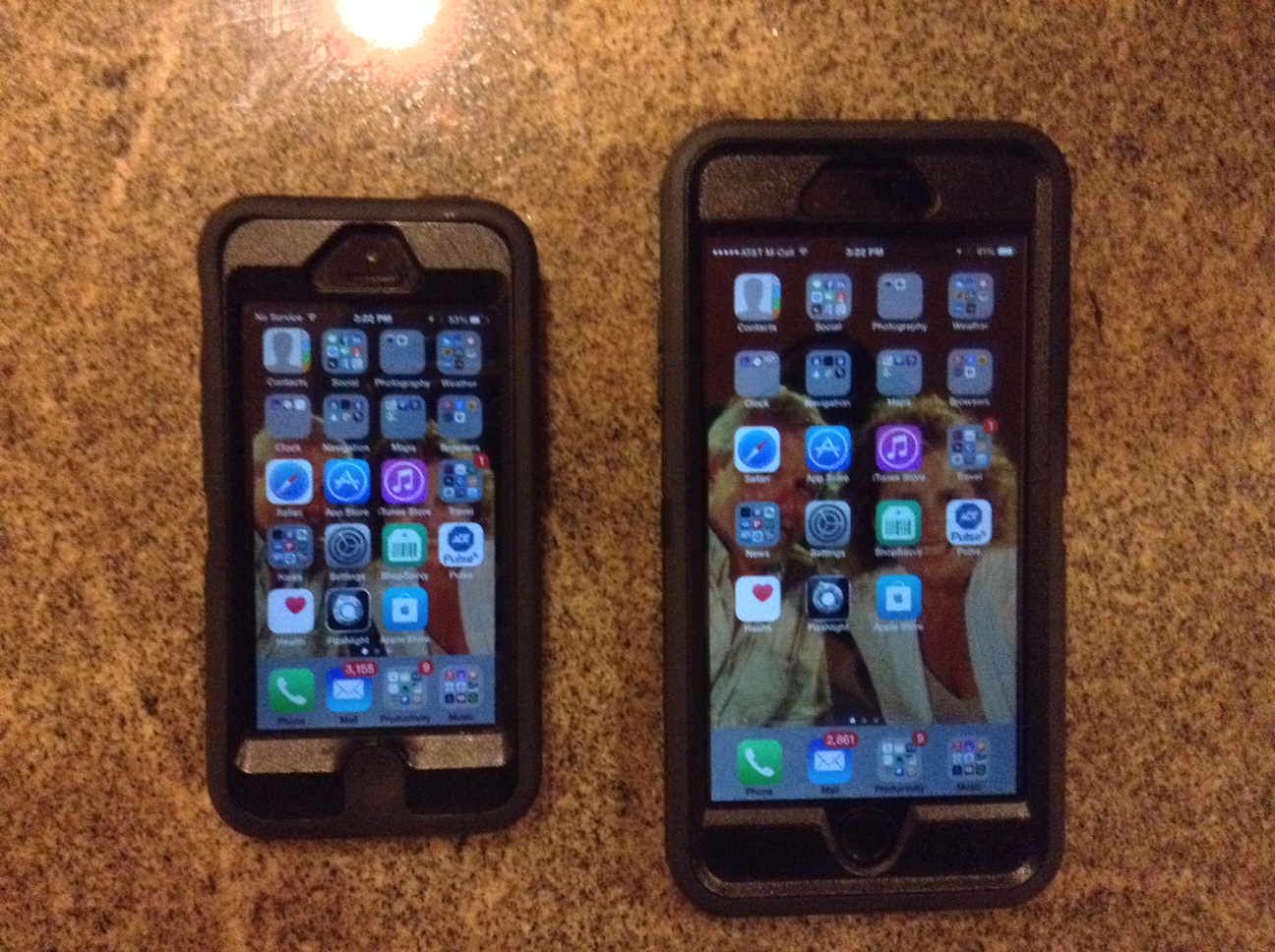 Here's a pic of the old and the new. iphone 5 and 6 plus. Zagg screen covers and Otter Box Defender case. No #bendgate, #hairgate or #beardgate concerns here!