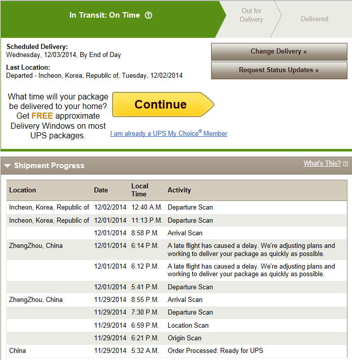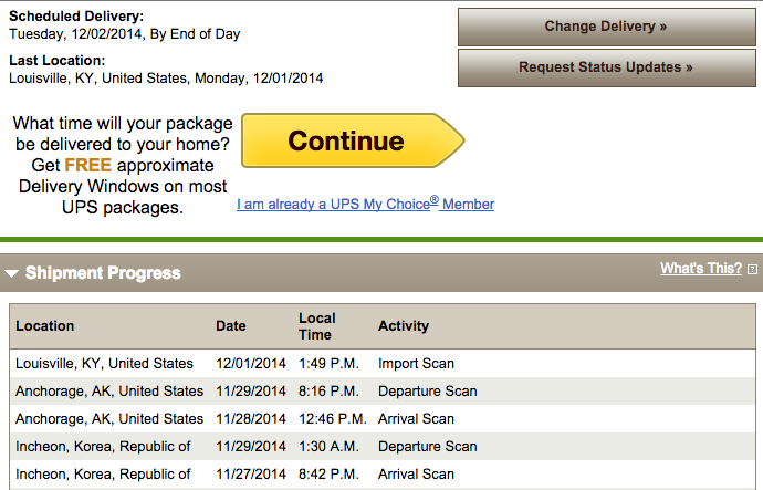 Ship Date: 10/30/2014 to 11/10/2014