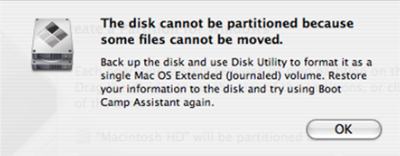 BC partitions must be created and removed using Boot Camp only.