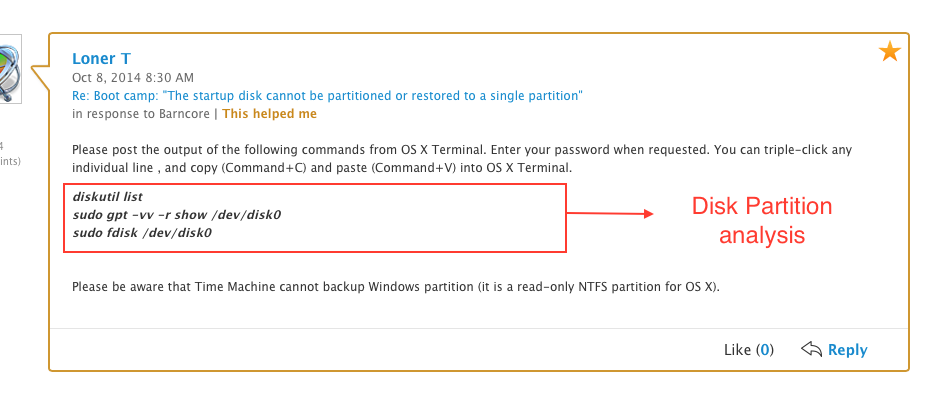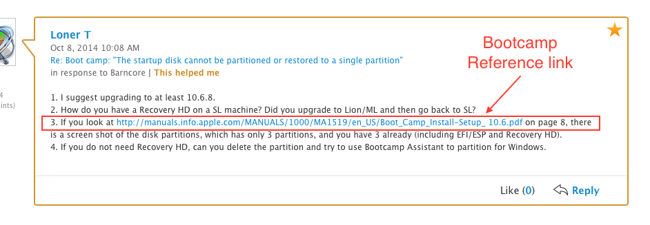 Boot camp: "The startup disk cannot be partitioned or restored to a single partition"