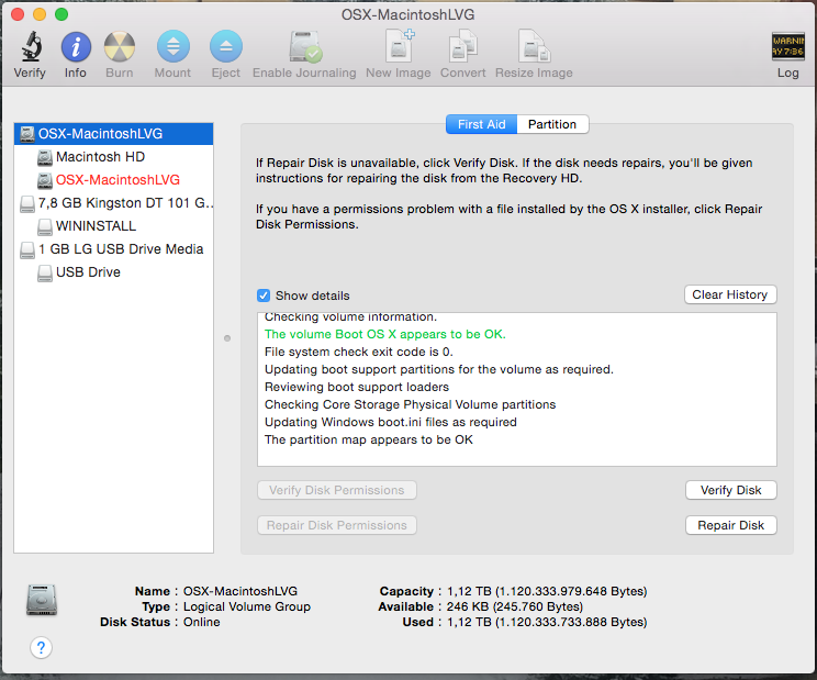 +-> Logical Volume A7D74F1A-5DF4-493C-96A8-652E8363137E