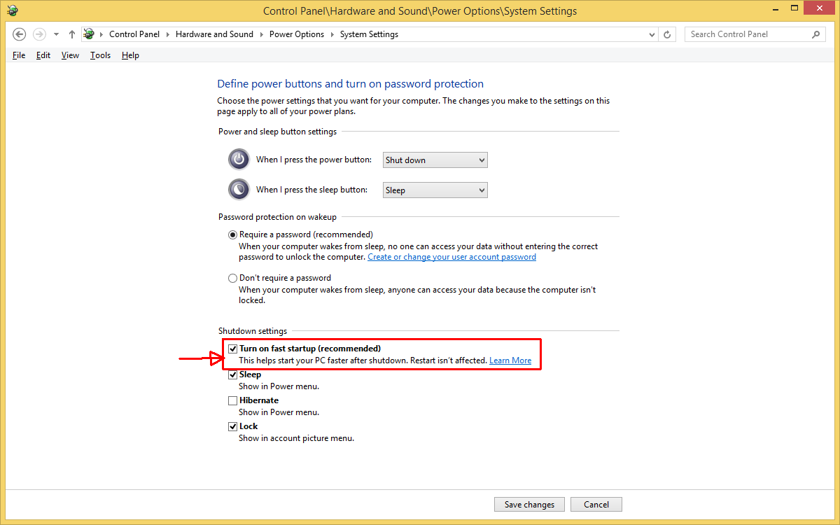 As Admin, go to Power Options -> Choose what the power buttons do -> Change settings that are currently unavailable -> Turn on fast startup (recommended)