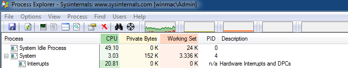 Immediatly after instalation two tasks has high CPU usage: "System interrupts" and "System".