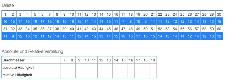 Durchmesser | 9 | 10 | 11 | 12 | 13 | 14 | 15 | 16 | 17 | 18 | 19 |