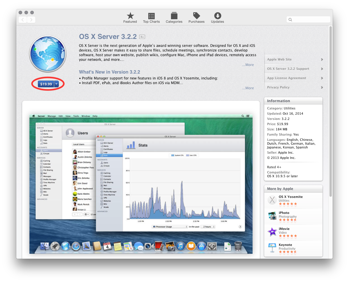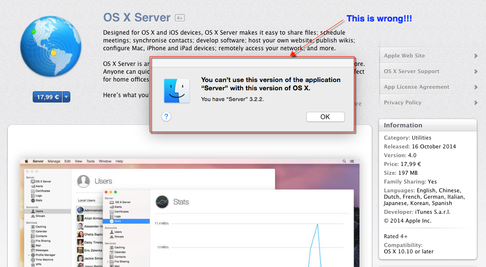 I think actually you are all missing the point that version 3.2.2 is the Server app for Mavericks, This does not entitle you to the Server App for Yosemite as this is not the one you paid for, as you paid for Server app for MAVERICKS.