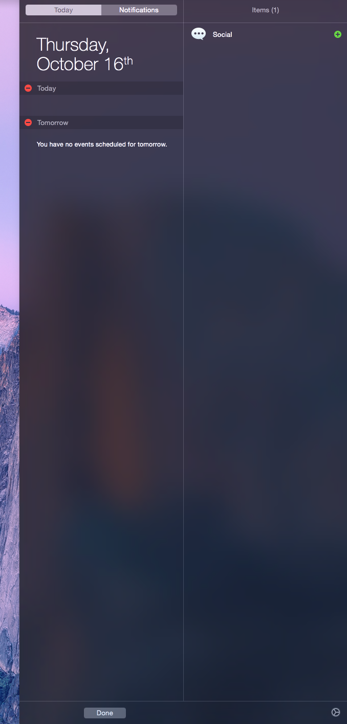 Maybe I have no idea what I'm doing, but I'd like to add calculator, weather, and stocks to my sidebar notification center. Using the new Yosemite OS. iMac is Mid-2011. I know how to add them, but I don't even see them to click the green plus sign. Please see pic. Apparently all I can add is 'social.' Am I not seeing something? Thanks.