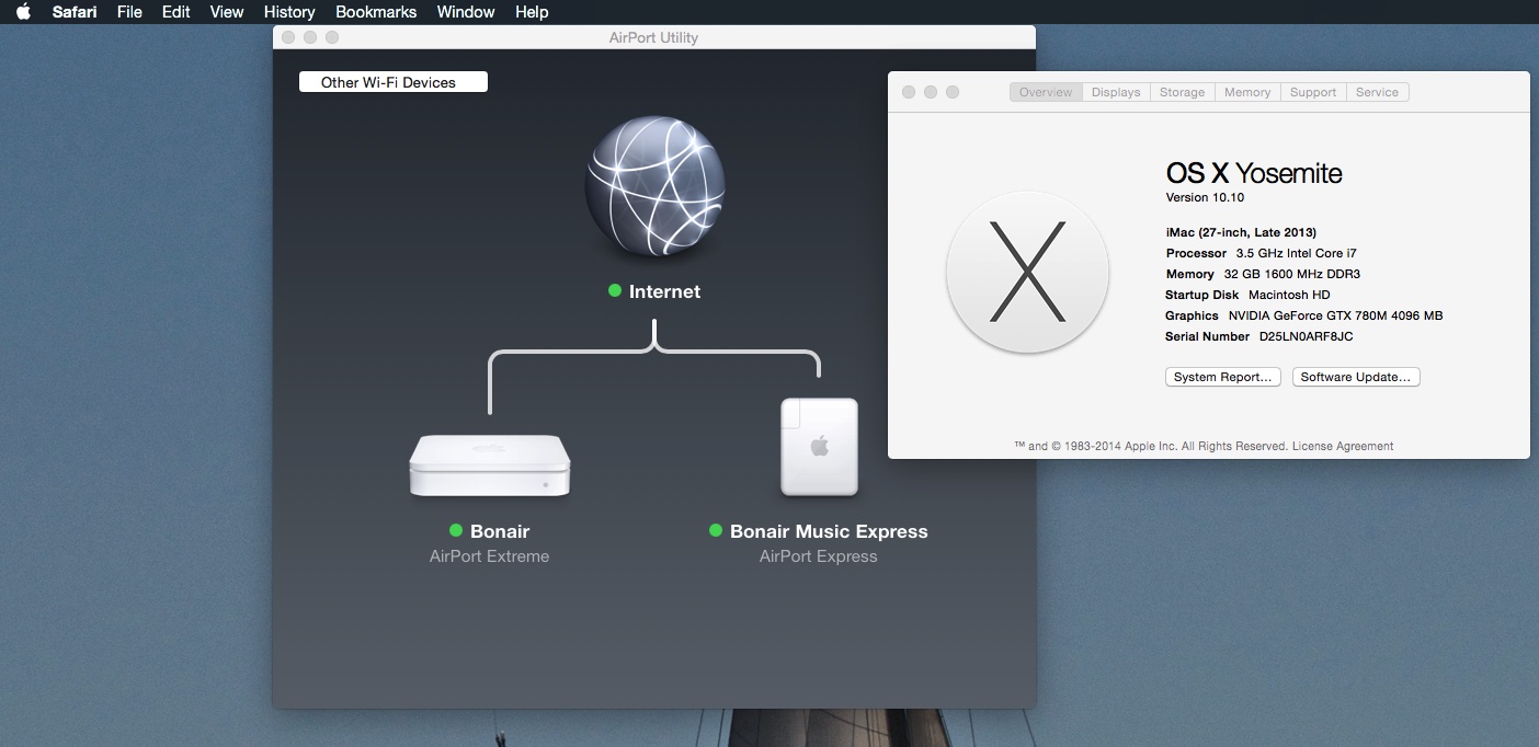 My home WiFi via Cable Router, Airport Extreme as captured on a late 2013 Core i7 Fusion iMac.
