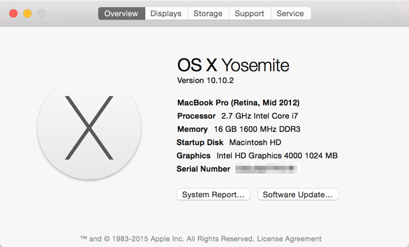 MacBook Pro with Retina display, OS X Yosemite (10.10)
