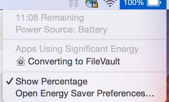 Then after the reboot, I accessed the System Preferences / Security & Privacy / FileVault and noted the drive being decrypted.
