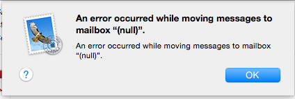 When I delete a message, I get the following error: "An error occurred while moving messages to mailbox “(null)”." What's more, the message does delete, but it doesn't end up in the trash, or anywhere for that matter - it's lost forever. Anybody know a fix?