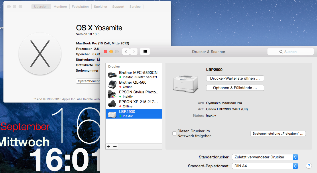 iMac, OS X Yosemite (10.10), Canon LBP2900