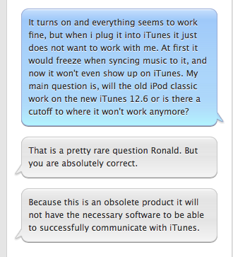 Although Apple is no longer selling iPod Classics, I hope this does;t mean that iTunes can no longer sync music to it?