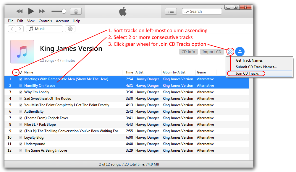 Trying to join tracks together in an Audiobook but cannot find anyway to do this in iTunes 12 - I know it was possible in 11, did Apple remove this function in 12 or is it just really well hidden?