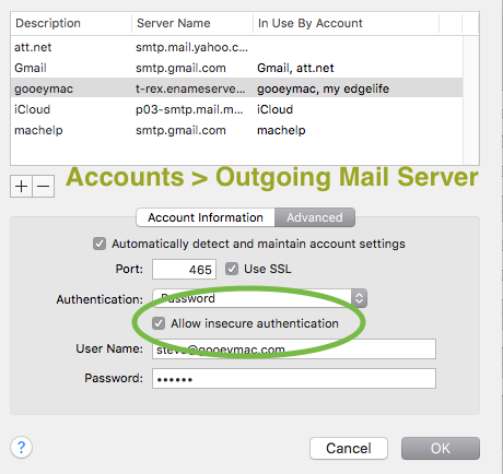 2. Then I tried this on my iMac with Yosemite 10.10.5 (from which I could not send mail):