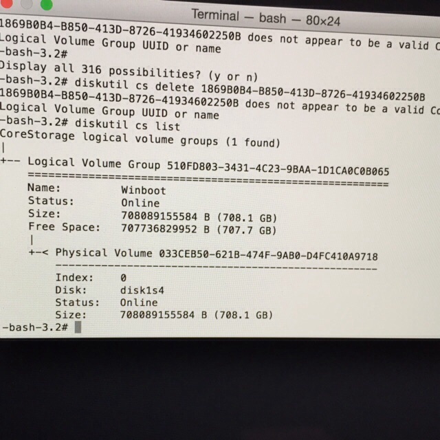 5. Delete Winboot Group- diskutil cs delete 510FD803-3431-4C23-9BAA-1D1CA0C0B065