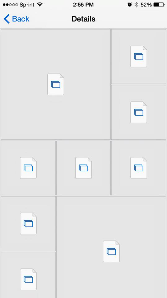 Fast forward to Sunday evening: I decided to forward a photo I had stumbled upon Friday night, but this time in detail view every few pictures in the same thread were replaced with two overlapping blue rectangles in a white box. When you click them you just see a grey background with the file name and file type in blue. When you look at the picture in the conversation, it appears as a white box with a blue question mark. (see attached screenshot of all three instances).