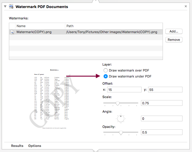 Oh and one more thing: Is there anyway to create a batch mode? So lets say I've got a text file with a lot of different names (Jenny Smith; Mike Meyers; the list goes on...). Could I feed that list of names into the workflow to output a watermarked pdf for very person? That would be the best case scenario!