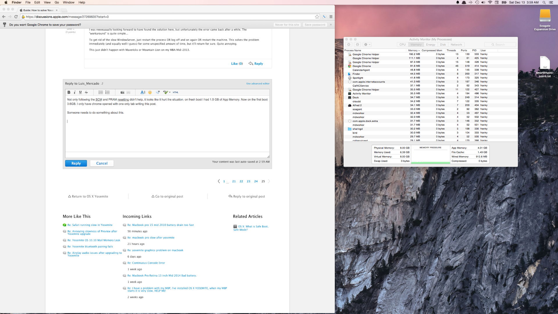 Macintosh HD: Disk size: 499.06 GB Disk used: 460.79 GB