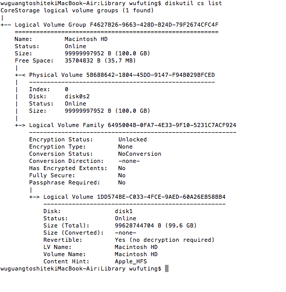 wuguangtoshitekiMacBook-Air:~ wufuting$ diskutil cs list