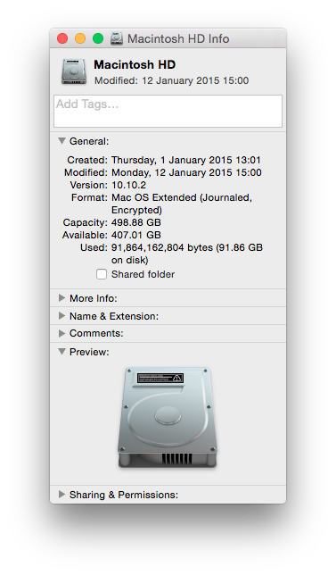 If you open a new finder window and go right to the top level, (you can go up levels if you press and hold command and then press the up cursor repeatedly until you see no further changes - ⌘▲), it should end up with a window that has your boot drive, amongst other things. Highlight that, then press and hold command and then press the letter i - ⌘i. Screen shot the new window that appears.