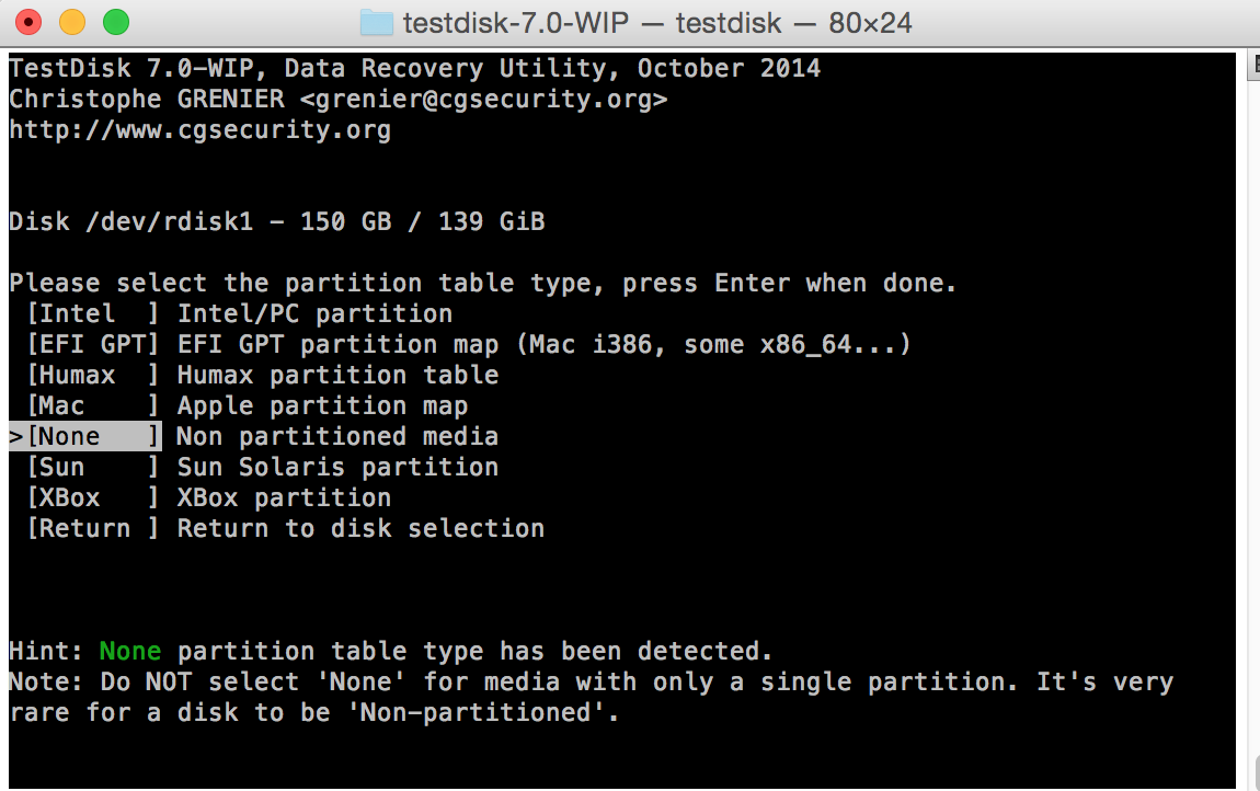 0: Apple_HFS Mac OS *150.0 GB disk1