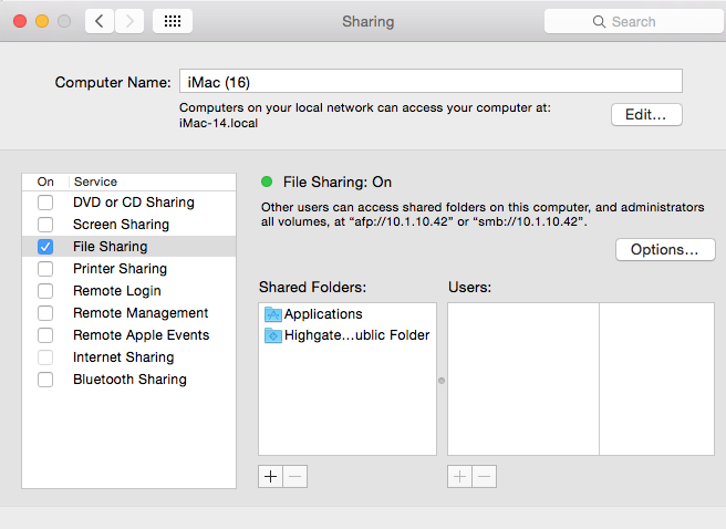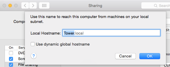 Next, still in System Preferences, go to Sharing and in the list of Services on the left select File Sharing. If the Computer Name at the top does not have any parenthetical number, do nothing. But if Computer Name has a parenthetical number, click "Edit" and in the Local Hostname box change it to the desired name without parentheses (and with no spaces or apostrophes, only alphabetic characters and hyphens as appropriate) and click OK.