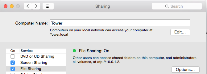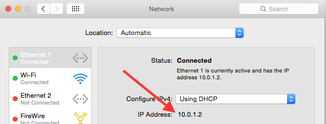 Select and copy the computer's IP address just below the "Configure IPv4" pulldown. (Mine is 10.0.1.2 with the red arrow in the pic).
